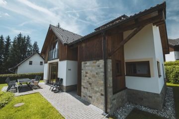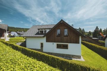 Machen Sie es sich in fünf großzügigen Schlafzimmern gemütlich und erwachen Sie mit Blick auf die ruhige Landschaft des Lipno-Sees. Nach einem erlebnisreichen Tag erfrischen Sie sich im modernen Badezimmer mit kompletter Ausstattung und bereiten Ihr Abendessen in der hochwertig ausgestatteten Küche zu. Genießen Sie gemeinsame Abende auf der Terrasse oder am Kamin im gemütlichen Wohnbereich.
