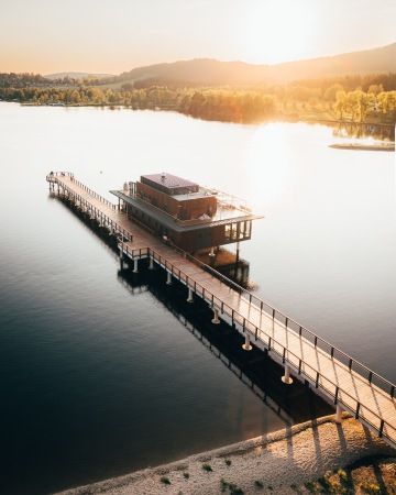 Lassen Sie sich von der maritimen Atmosphäre von Lipno und dem ikonischen Pier verzaubern! Genießen Sie das Klingeln der Masten, das sanfte Plätschern der Wellen und den Duft des Wassers in der Luft. Spazieren Sie auf dem längsten Pier Mitteleuropas, wo Sie eine erfrischende Getränkepause einlegen oder ein köstliches Gericht mit Blick auf die Segelboote und den See genießen können.