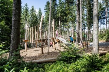 Entdecken Sie ein einzigartiges Erlebnis auf dem Baumwipfelpfad Lipno, wo Sie auf einem Holzsteg hoch über dem Boden spazieren und atemberaubende Ausblicke auf die Natur des Böhmerwaldes, den Lipno-See und die Gipfel der Alpen genießen können. Der Pfad ist für alle zugänglich, einschließlich Familien mit Kindern und Besuchern mit eingeschränkter Mobilität. Am Ende erwartet Sie ein 40 Meter hoher Aussichtsturm, von dem Sie mit einer Rutsche hinunterfahren können.